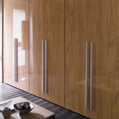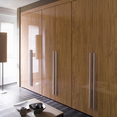 밝은 우드 색감과 하이글로시의 광택이 어우러져 화사하고 고급스러운 붙박이장입니다~