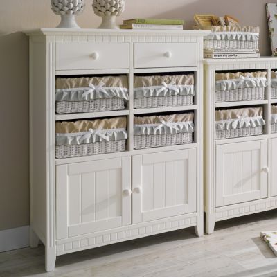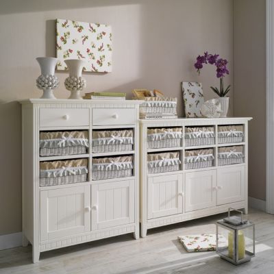 라탄바구니가 사랑스러운 느낌을 더해 주는 서랍장이 방과 매우 잘 어울립니다~