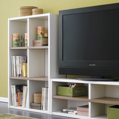 크림 색상으로 화사하며, 책과 소품이 수납되는 실용적인 거실장이 돋보이네요~