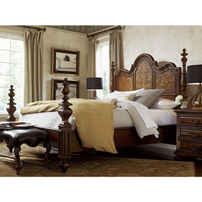 넓고 깔끔한 침실에 놓인 웅장하고 이국적인 분위기의 침대가 매우 돋보입니다~