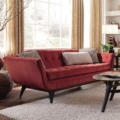 레드 색상의 패브릭 소파가 엔틱한 가구들과 잘 어우러집니다~