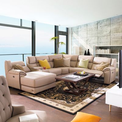 넓은 거실 공간에 놓인 리클라이너 소파가 럭셔리한 분위기를 더해 주네요~