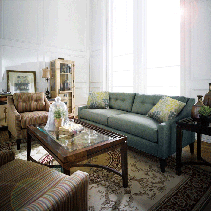 무거운 느낌의 가죽 소파에서 천소파로의 이동..