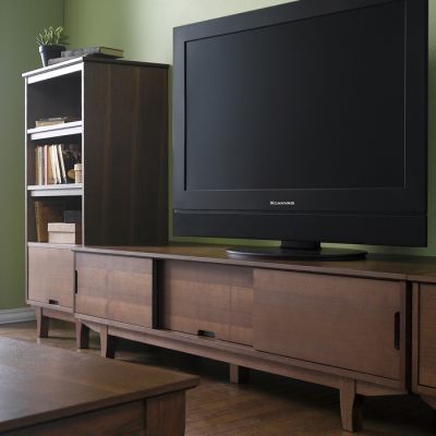 앞쪽만 봐서는 TV장이라고 생각되지 않을 정도로 매끈하게 생겼지만 뒤쪽으로 전선 배선을 고려한 구멍까지 미리 나 있어 겉으로 드러나지 않게 정리할 공간에 사용할 가구로는 이만한 것이 없을 것 같다는 생각이 들 정도입니다.