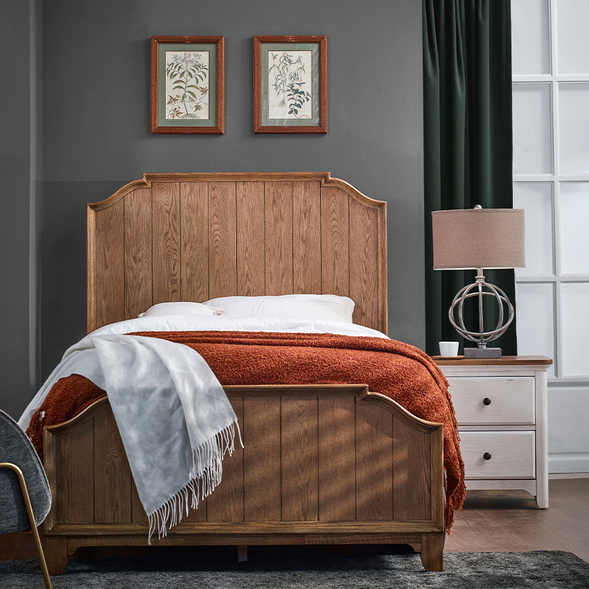 1008 Abigail-Oak Single Panel Bed