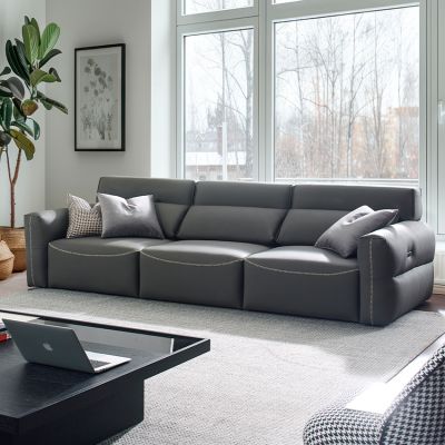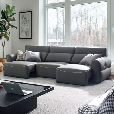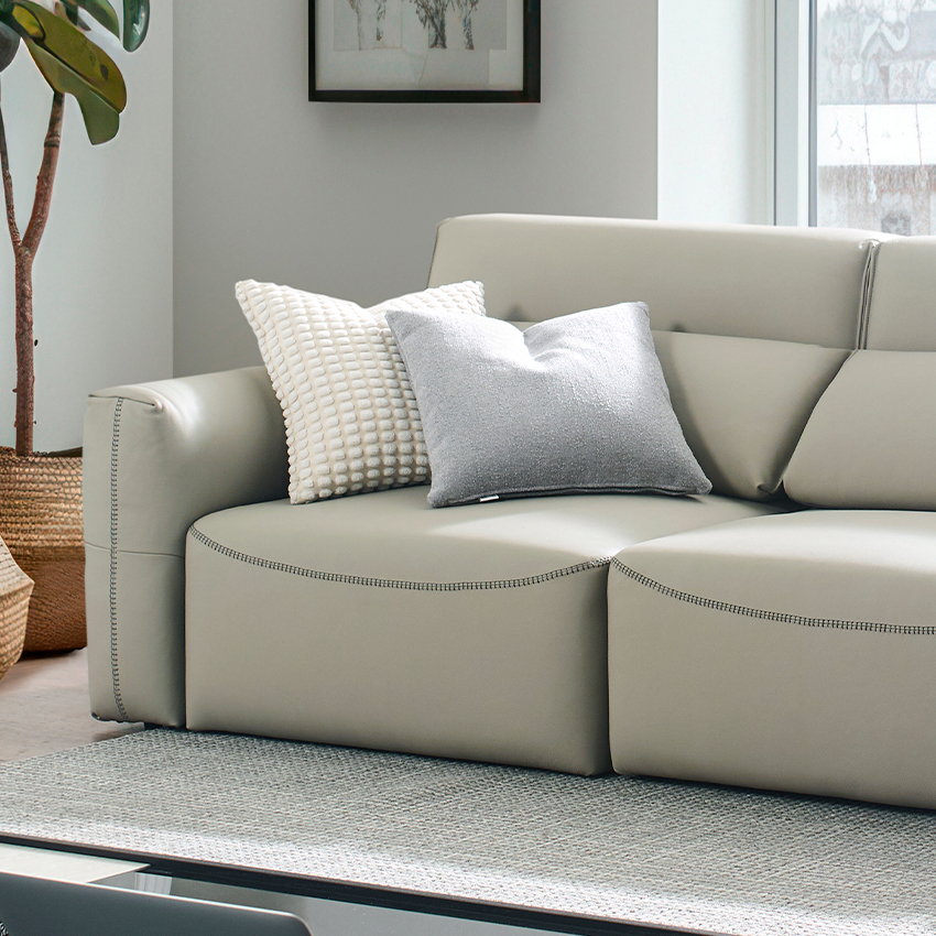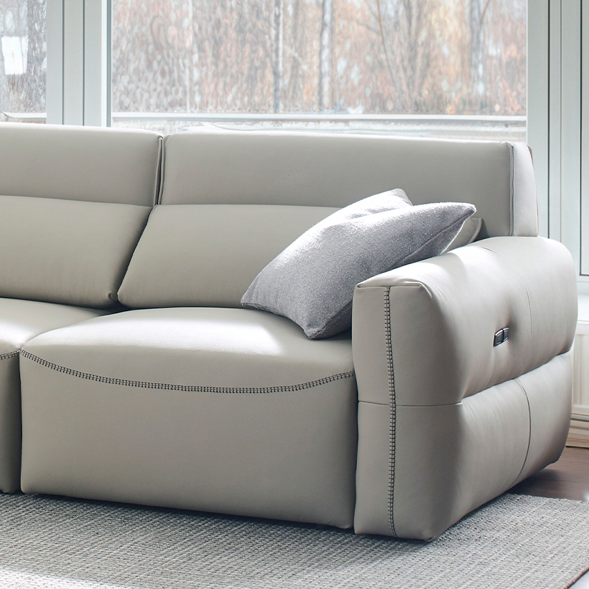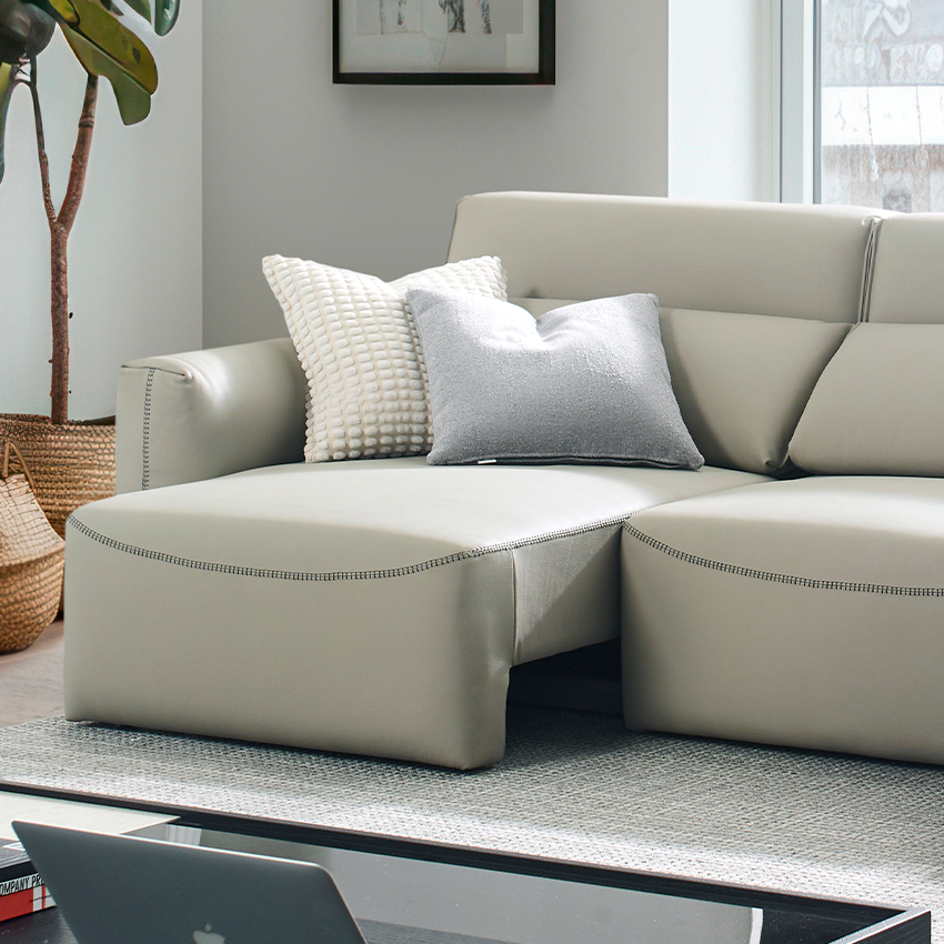 Alameda-Light Grey Leather Sliding Sofa