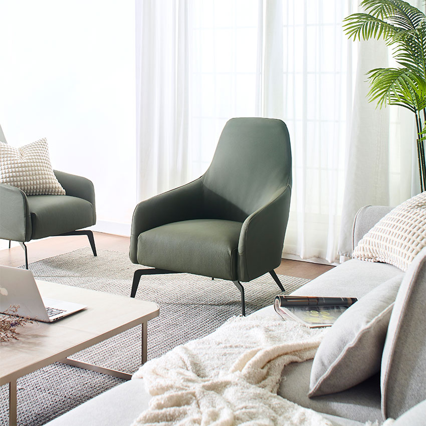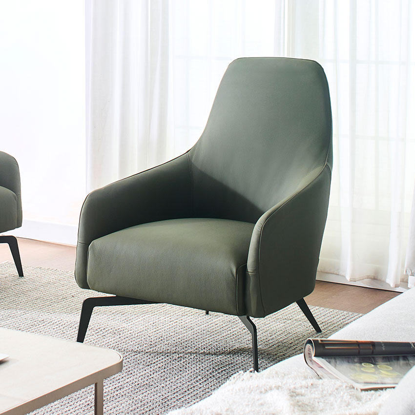 Columbus-Olive Leather Single Chair