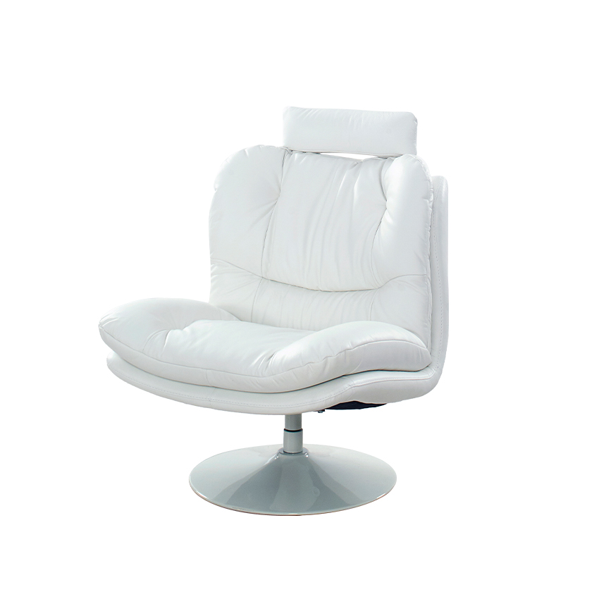 P017-White Leather Swivel Chair