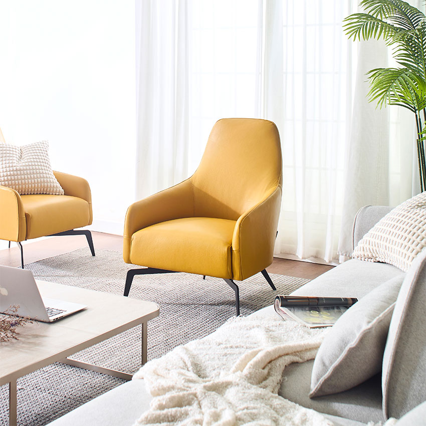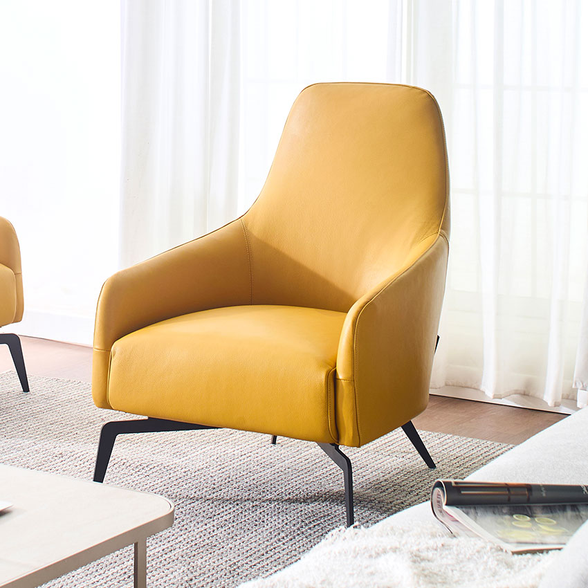 Columbus-Yellow Leather Single Chair