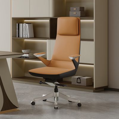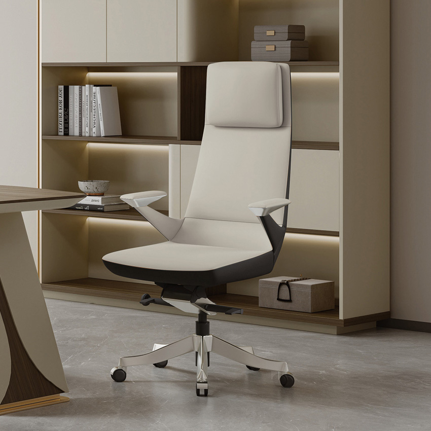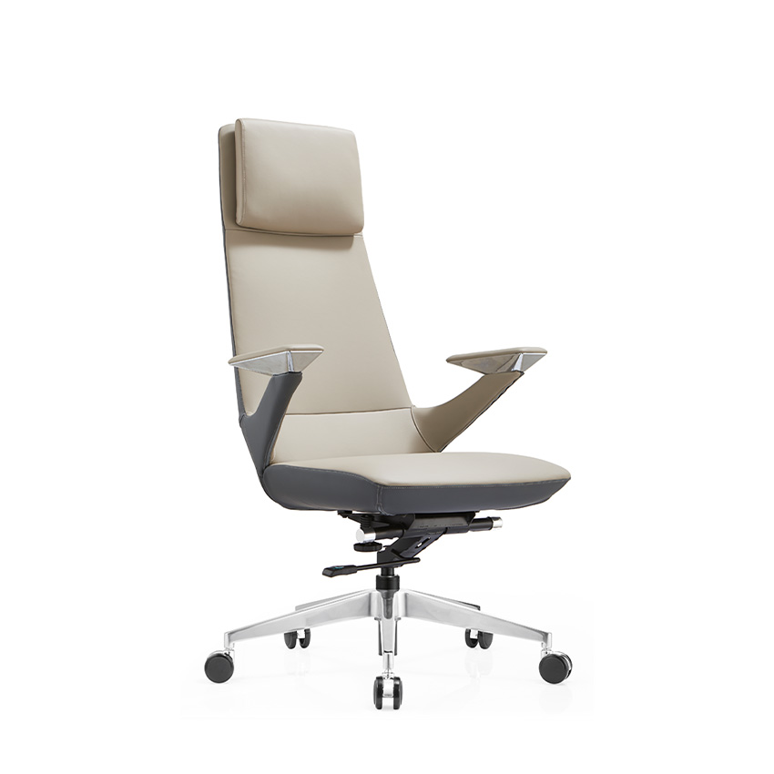 680A-Grey Leather Office Chair