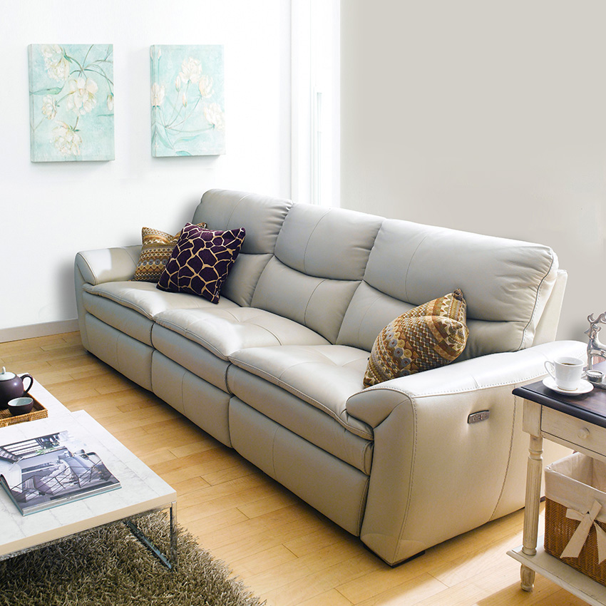 E1455-IvoryLeather Recliner Sofa