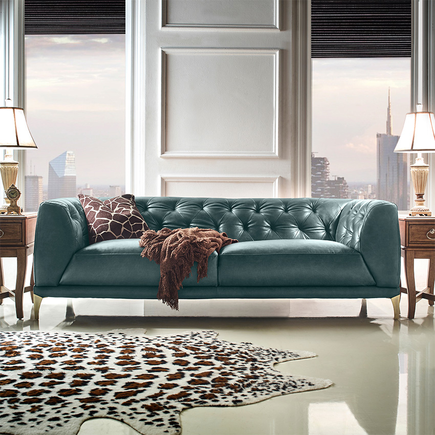 11810-GreenLeather Sofa