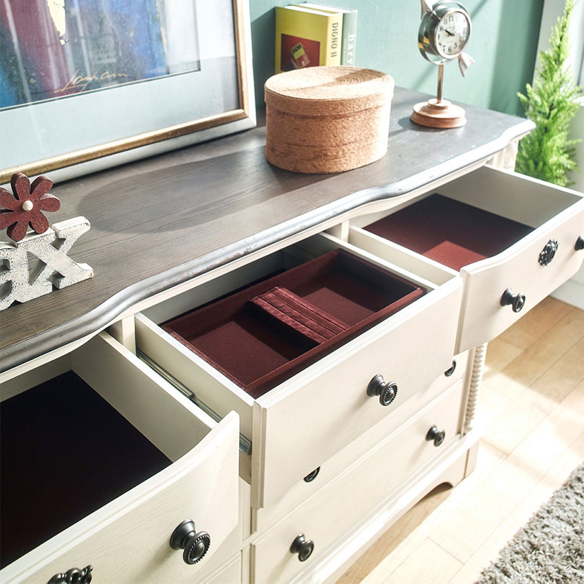 미라지 침대세트 역시 미국가구답게 싸이즈가 엄청 크네요. 다양한 수납공간이 많아서 좋아요. 특히, 침대에 딸려있는 서랍장은 침구류 수납하기 딱 좋아요. 역시 미라지!