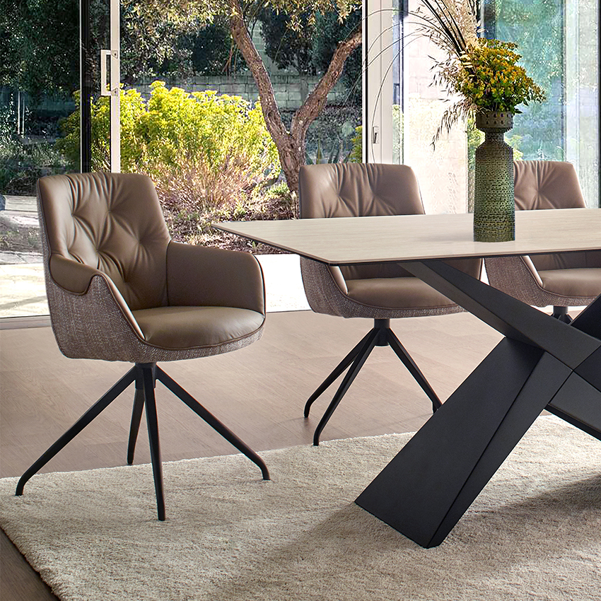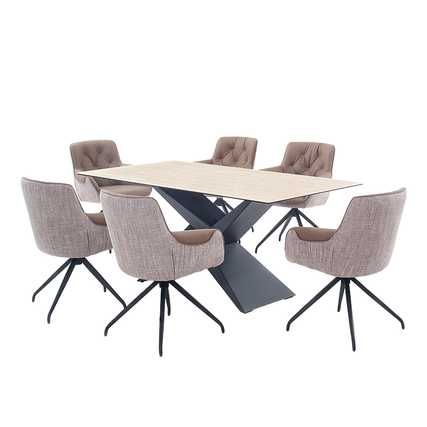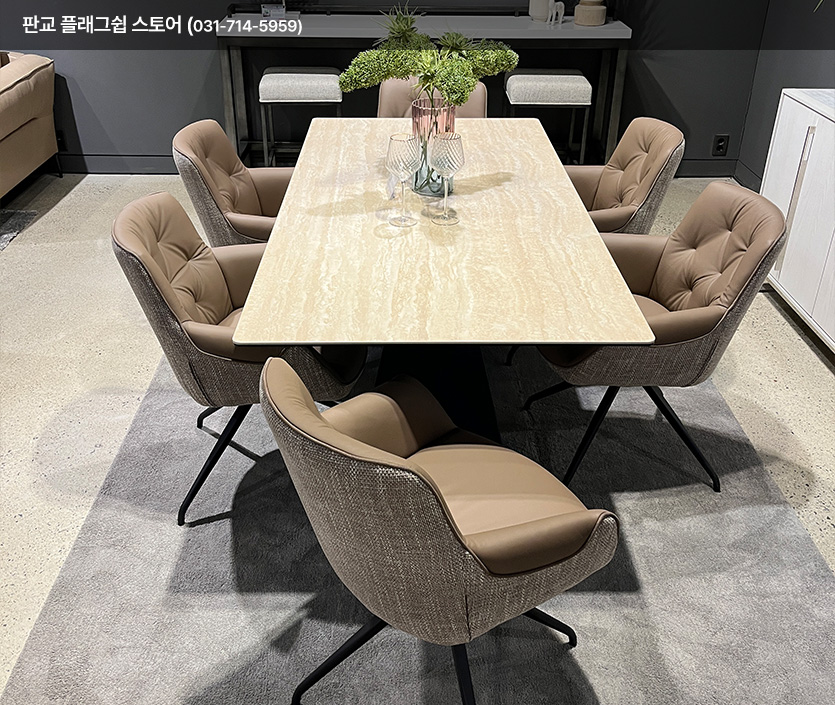 6인 식탁과 의자 미라지가구 부산점에서 구매 했습니다. 낮과 밤 어느 시간대에 봐도 예쁜 컬러 입니다! 가죽과 패브릭의 조화, 식탁 상판의 무늬와 멋진 다리의 디자인이 맘에 듭니다!