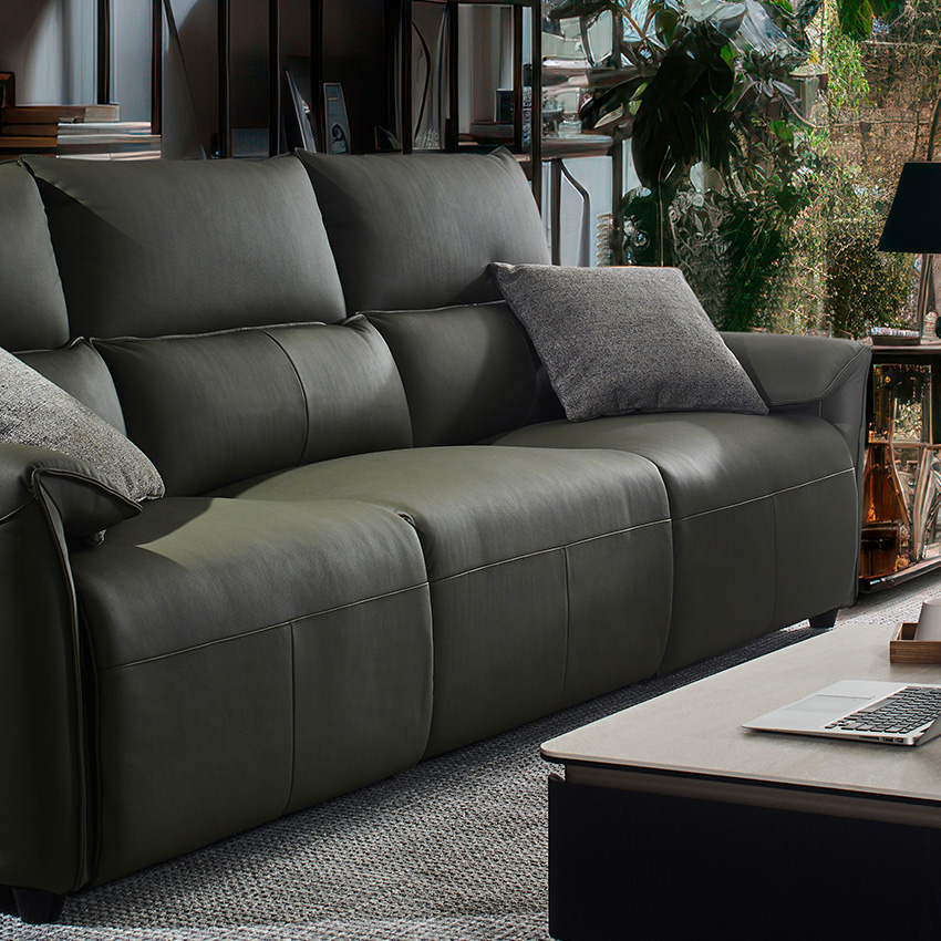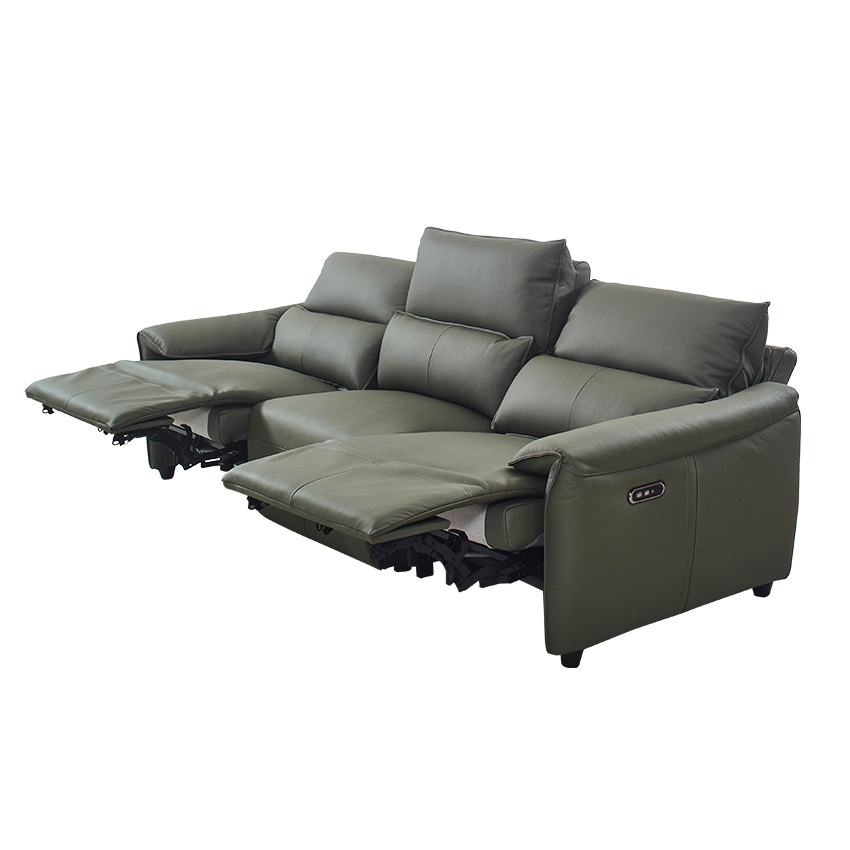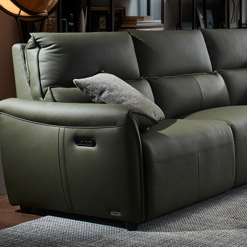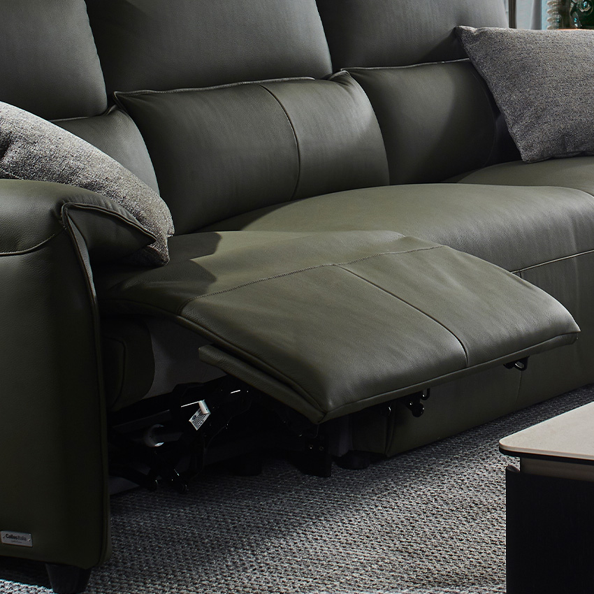Lausanne-Olive Leather Recliner Sofa